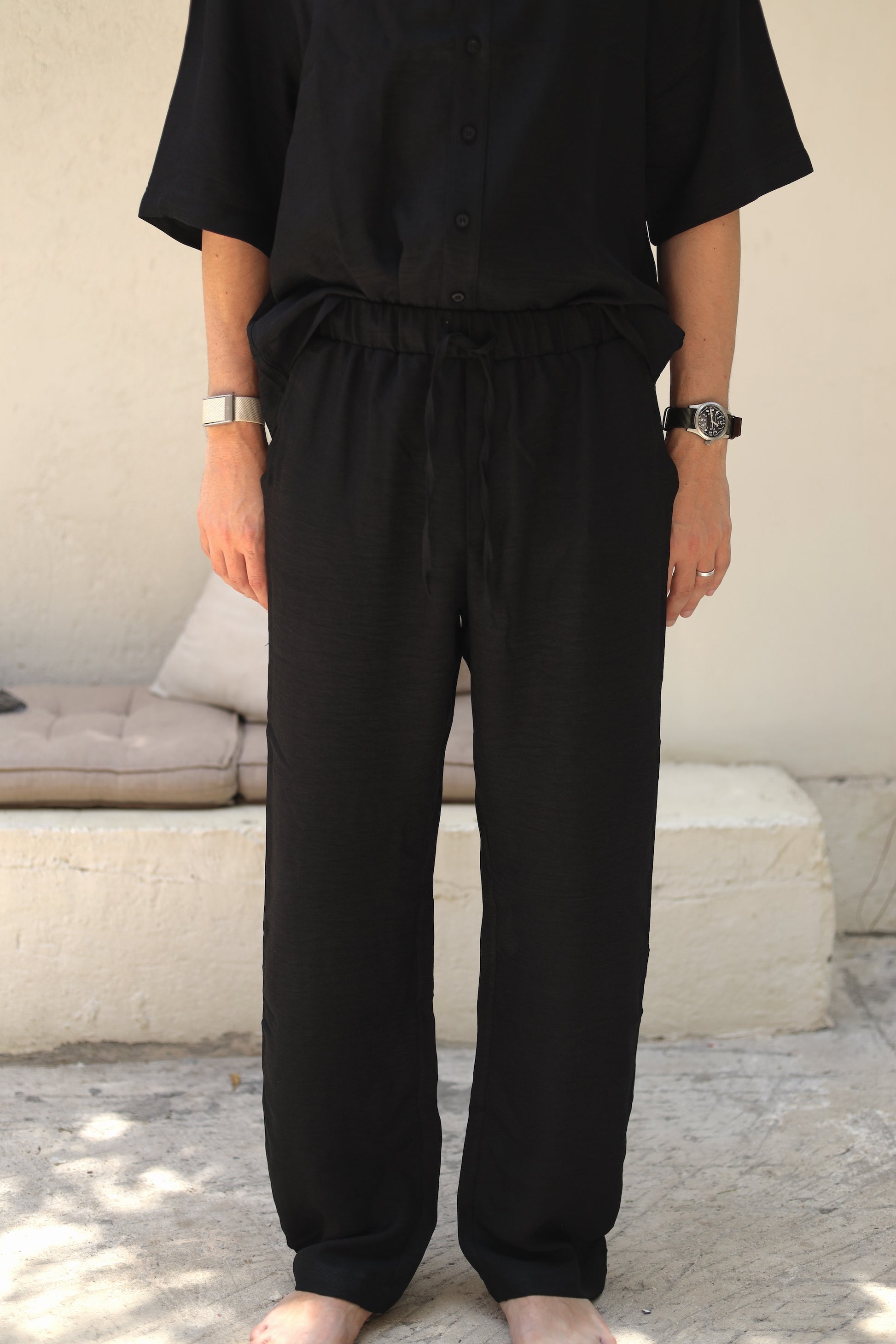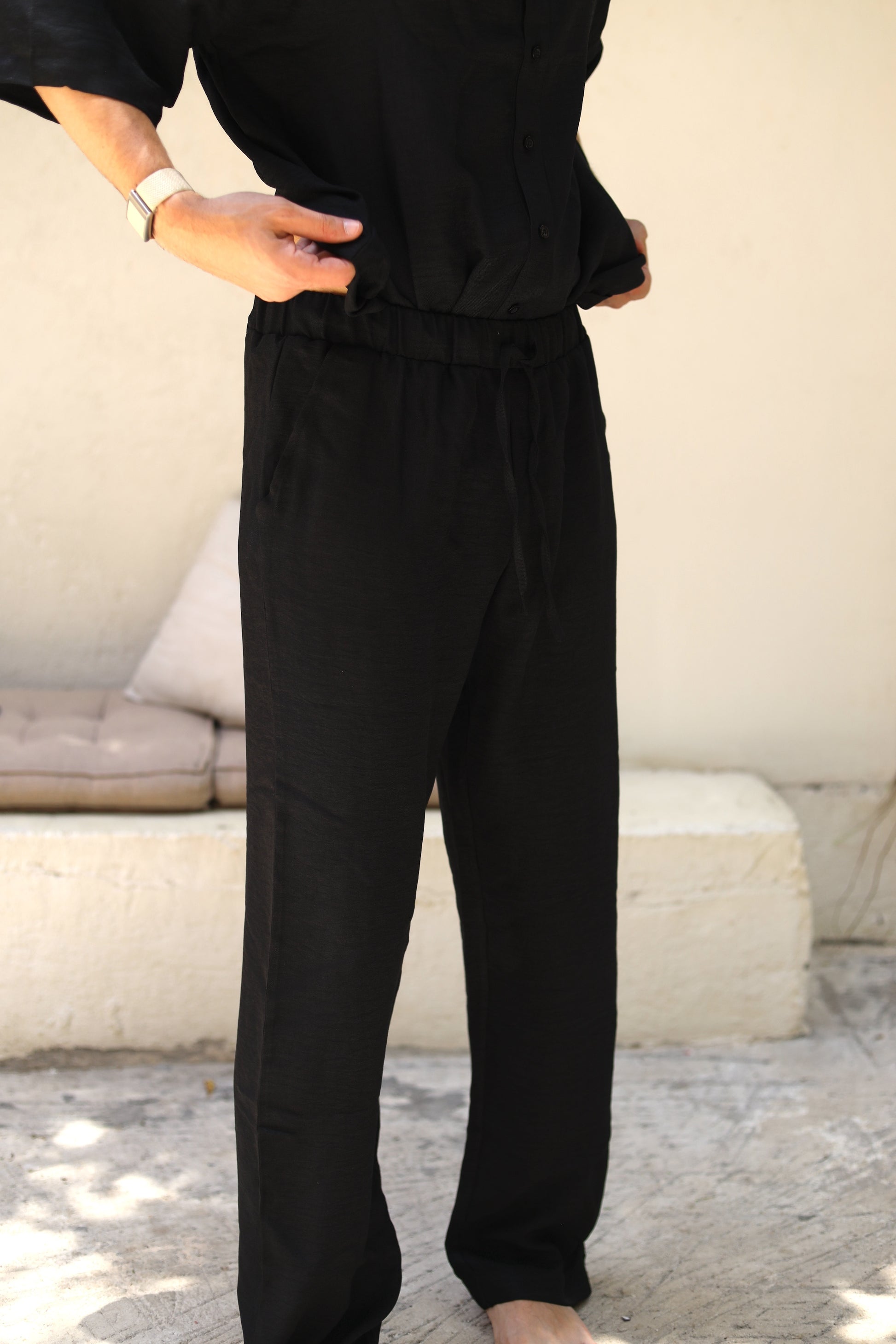 Pants strings on the front